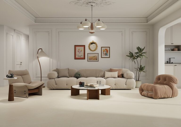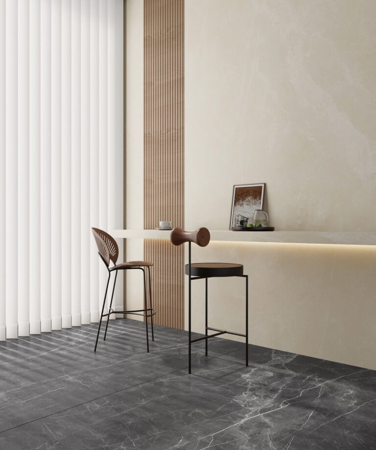 Lựa chọn bề mặt Mờ (Matte) cho tông màu Beige là một quyết định thiết kế thông minh. Nó giúp viên đá trông tự nhiên như đá vôi (Limestone) thật, loại bỏ cảm giác bóng bẩy nhân tạo.