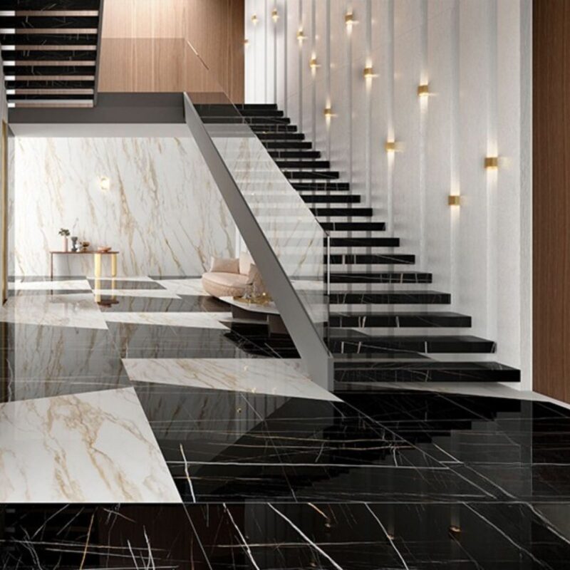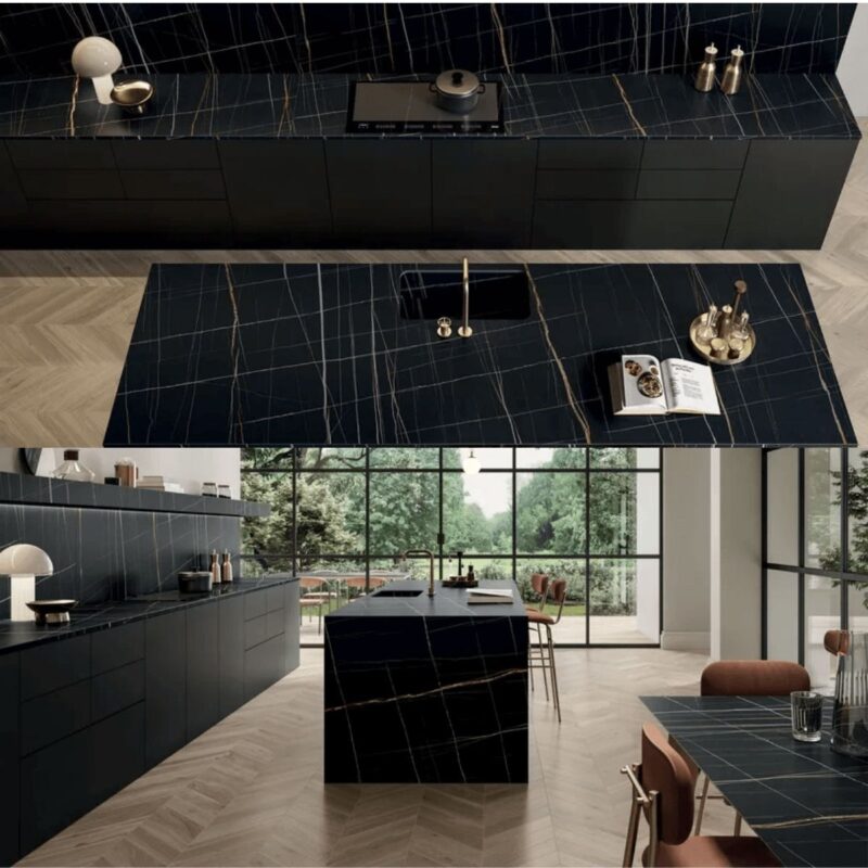 Nếu bạn cần một vật liệu “Sang – Xịn – Mịn”, nổi bật với không gian hiện đại, SAHARA NOIR (Vasta Stone) là lựa chọn hoàn hảo. Nền đen sâu kết hợp hệ vân sáng tạo cảm giác bề mặt có chiều sâu và ánh nhìn “đắt giá” ngay từ xa, cực hợp với concept tối giản, luxury, tone gỗ ấm hoặc kim loại.